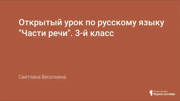 Урок разработан на основе «Образовательной системы 2100» для 3-го класса с целью познакомить учащихся с частями речи, ввести понятия: существительное, прилагательное, глагол, местоимения, предлоги. Через самостоятельную работу учащихся организована работа по открытию новых знаний, а именно: слова делятся на группы по их общим признакам, открывается название этих групп слов и на основании полученных результатов выводится понятие, к какой части речи они относится.