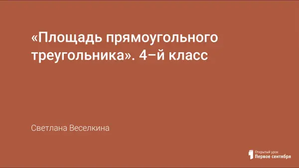 Учащиеся знакомятся с понятием «площадь прямоугольного треугольника», самостоятельного решают проблему. Изучается алгоритм нахождения площади прямоугольного треугольника, понятие «катет» и «гипотенуза».