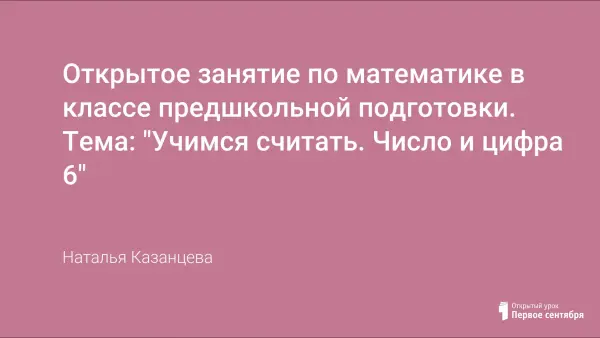Цель занятия: формирование математического представления, умения считать в пределах 6; знакомство с цифрой 6; развитие внимания и памяти.