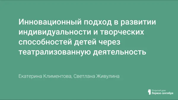 Инновационный подход в развитии индивидуальности и творческих способностей детей через театрализованную деятельность