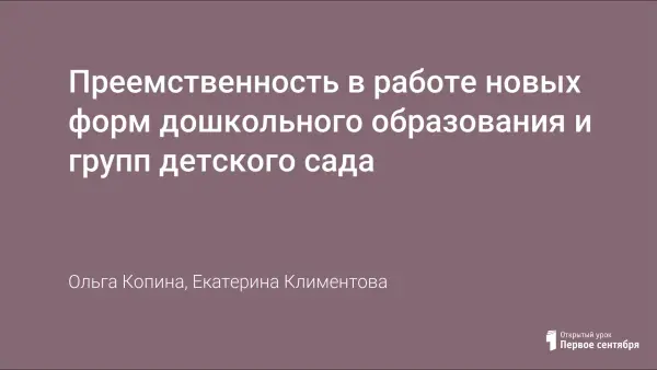 Преемственность в работе новых форм дошкольного образования и групп детского сада