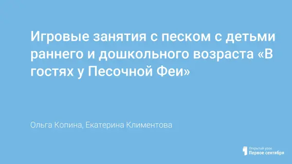 Игровые занятия с песком с детьми раннего и дошкольного возраста «В гостях у Песочной Феи»