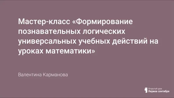 Цель мастер-класса: познакомить с методами и приемами по формированию и развитию УУД на уроках математики и проектированию заданий по математике, формирующих познавательные (логические) УУД.