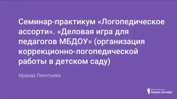 Цель семинара-практикума: оказание помощи воспитателям в организации коррекционной работы по речевому развитию на занятиях.