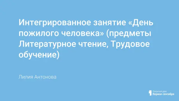 Интегрированное занятие «День пожилого человека» (предметы Литературное чтение, Трудовое обучение) рассчитано на детей начальной школы, а также детей с ограниченными возможностями здоровья. Цель занятия: воспитывать уважительное отношение к окружающим. Благодаря занятию укрепляется связь между поколениями; дети знакомятся с техникой модульного оригами; развивается познавательная активность, творческое воображение. Занятие может быть использовано воспитателями и учителями начальной школы.