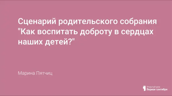 Сценарий родительского собрания "Как воспитать доброту в сердцах наших детей?"
