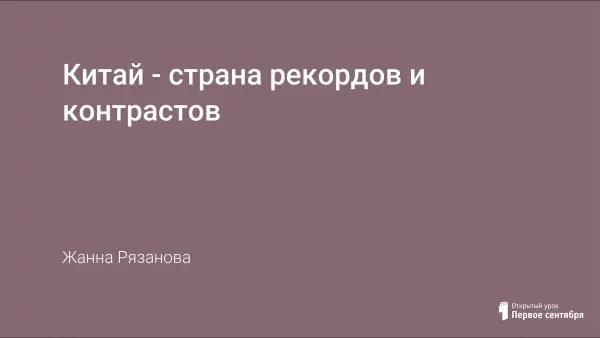Урок проходит в форме урока-зачета, где раскрывается уникальность Китая, выявляются положительные и отрицательные стороны в разных сферах жизнедеятельности государства. Главная цель: создать образ Китая, как страны современной и одновременно не забывающей о своих исторических корнях. В заключение урока выполняется небольшая практическая работа.