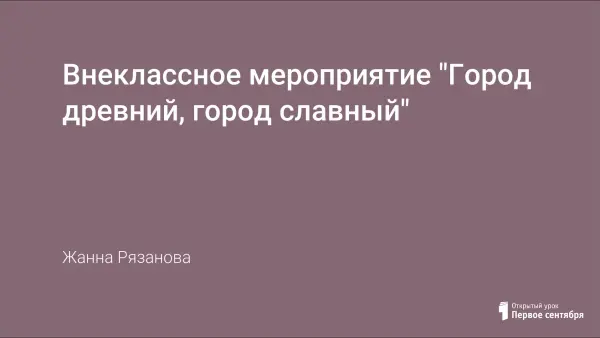 На внеклассном мероприятии «Город древний, город славный» появилась возможность, обобщая полученные знания на уроках географии, краеведения, во время экскурсий по памятным местам Подмосковья, работая в библиотеках с научной литературой развить наш кругозор, приобщиться к прекрасному и суметь донести свои знания до окружающих. Юные экскурсоводы, у которых уже есть небольшой опыт в проведении экскурсий, предлагают увлекательное путешествие по древним городам России.