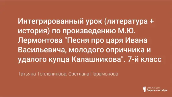Интегрированный урок (литература + история) по произведению М.Ю. Лермонтова "Песня про царя Ивана Васильевича, молодого опричника и удалого купца Калашникова". 7-й класс