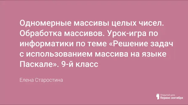 По определению, ИГРА – это вид деятельности в условиях ситуаций, направленных на воссоздание и усвоение общественного опыта, в котором складывается и совершенствуется самоуправление поведением. Цель работы: формирование у учащихся закрепление и систематизация знаний по теме «Одномерные массивы», совершенствование практических навыков в процессе обучения.