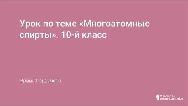 Данный урок проводится в 10-м классе (базовый уровень), основная идея урока – самостоятельно по группам исследовать свойства многоатомных спиртов на примере глицерина и этиленгликоля. Работа проводится по учебнику, с помощью интернет-ресурсов и лабораторной работы. В конце урока ученики должны иметь представление о строении и свойствах многоатомных спиртов.