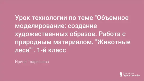 Урок в 1-м классе призван учить элементарным приемам конструированиям из пластилина и природного материала, служит развитию творческого потенциала ребенка, его созидательных возможностей, воспитывает мотивацию к учению, аккуратность при выполнении поделки.