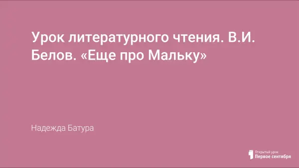 Урок литературного чтения с целью познакомить учащихся с произведением В.И. Белова «Ещё про Мальку». На уроке ребята учатся определять отношение автора к героям рассказа на основе анализа произведения и выражать своё отношение к происходящим событиям.