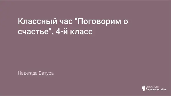 Цель классного часа: раскрыть смысл понятия «счастье», его составляющие компоненты. Задачи: помочь осмыслить понятие «счастье» применительно к самому себе; показать значимость проблемы счастья для всей последующей жизни; развитие социальных установок, ценностных ориентиров, развитие умений «входить в положение людей», лучше понимать их чувства; воспитывать чувство прекрасного, формировать чуткое отношение друг к другу.