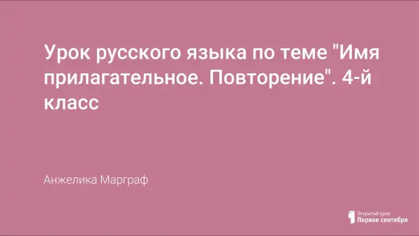 Урок русского языка в 4-м классе разработан с использованием игровых, занимательных форм обучения, что позволяет сделать урок разнообразным и доступным для усвоения материала. Данный урок проводится с целью вспомнить, повторить и систематизировать имеющиеся у детей знания об имени прилагательном как о части речи, определить роль имён прилагательных в речи, подчеркнуть связь имени прилагательного и имени существительного, повторить синтаксический разбор предложения.