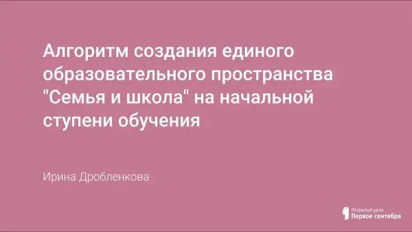 Без совместной работы семьи и школы невозможно воспитать личность, имеющую свою позицию, умеющую выбирать приоритеты. Главная задача образовательного учреждения – сделать родителей своими союзниками в воспитании ребенка, что во многом зависит от мастерства педагога. С чего начать создавать союз родителей и педагогов? Каков должен быть алгоритм взаимодействия участников образовательного процесса с целью формирования развития успешной личности младшего школьника?