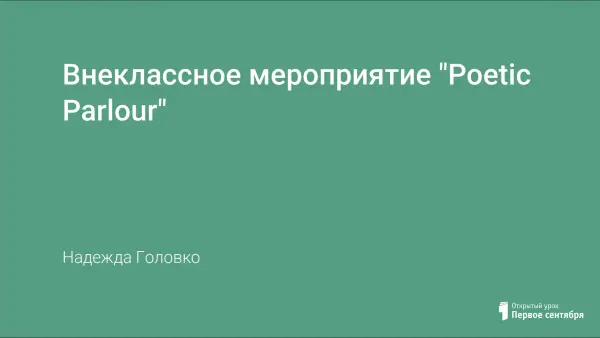 Учащиеся читают стихи знаменитых британских поэтов, чьим творчеством восхищаются во всем мире. Представлена презентация, в которой дана информация о некоторых поэтах и их произведениях. Для зрителей «Поэтической гостиной» - викторина и призы. Подобные мероприятия способствуют улучшению произношения, расширению кругозора, развитию социокультурной компетенции.