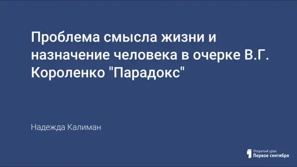 Цель урока – в подведении учащихся к пониманию нравственного смысла, проблематики и художественного своеобразия очерка В.Г. Короленко «Парадокс»; совершенствовании навыков анализа художественного текста, развитии умения работать, творчески общаться в малых группах.