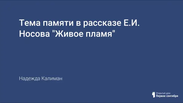 Цель урока: помочь ученикам прийти к осмыслению авторского отношения к изображаемому, постижению художественной идеи рассказа Е.И.Носова «Живое пламя».