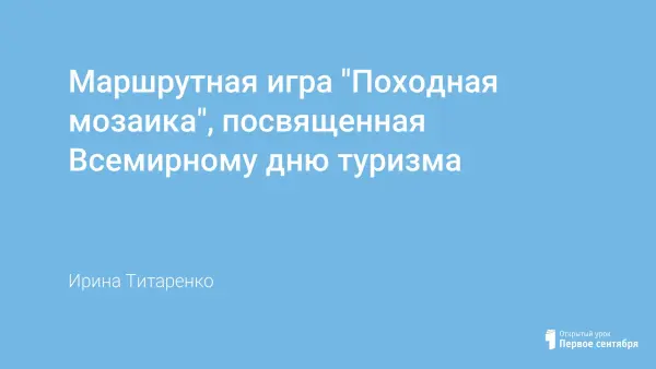 Маршрутная игра «Походники-туристы», приурочена к празднованию Всемирного дня туризма. Разработка, включающая в себя разнообразные задания (спортивные, медицинские, туристические, экологические), рекомендована для младших школьников. Учащиеся в игровой форме совершенствуют умения и навыки, необходимые в походных условиях. Целью данного мероприятия является укрепление здоровья, воспитание чувства товарищества и формирование основ экологической культуры.