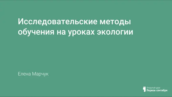 Исследовательские методы обучения могут использоваться на уроках экологии. Примером таких методов обучения служит исследовательская деятельность, результаты которой учащиеся демонстрируют на уроке-конференции.