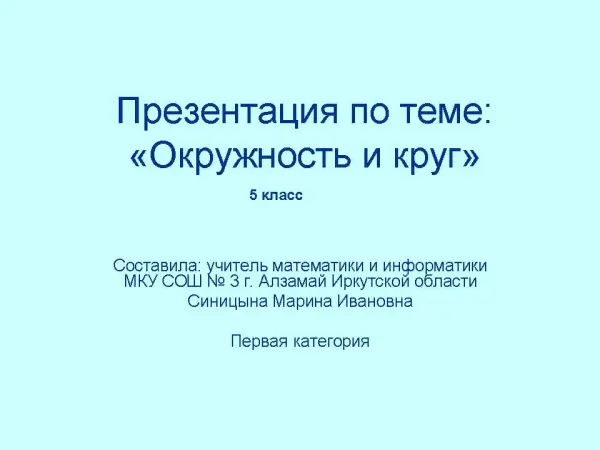 Цель урока – научить учащихся понимать, что такое окружность, круг; дать определения окружности, круга; строить радиус, диаметр, полукруг, полуокружность; развивать навыки самостоятельной работы, аккуратное построение чертежа.