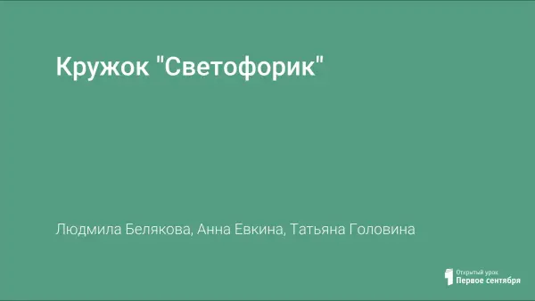 Успех профилактики дорожно-транспортных происшествий с детьми во многом зависит от сознательности, личной культуры и дисциплинированности самих взрослых. Важное направление деятельности кружка «Светофорик» – защита, сохранение и развитие здоровья ребенка. Цель: показать ребенку и родителям значимость соблюдения правил дорожного движения для будущего развития нравственных качеств, профессионального становления.