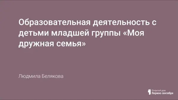 Цель: формирование у дошкольников элементарных представлений о семье как людях, которые живут вместе, ее членах; формирует представления о доброжелательных отношениях родных людей, об эмоциональном состоянии членов семьи.