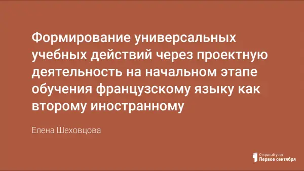 В статье отражен личный опыт формирования универсальных учебных действий через проектную деятельность на самом начальном этапе обучения французскому языку как второму иностранному. В качестве примера представлен урок по теме «Семья» в форме технологической карты.
