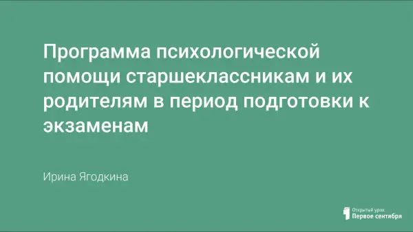 Представленная программа психологической помощи старшеклассникам и их родителям в период подготовки к экзаменам поможет оказать полноценную психологическую поддержку и выбрать оптимальную стратегию поведения во время подготовки и сдачи экзаменов как выпускникам, так и их родителям.