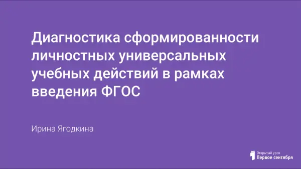 Личностные универсальные учебные действия обеспечивают ценностно-смысловую ориентацию учащихся (умение соотносить поступки и события с принятыми этическими принципами, знание моральных норм и умение выделить нравственный аспект поведения) и ориентацию в социальных ролях и межличностных отношениях. В данной статье представлены методики для диагностики личностных универсальных учебных действий.