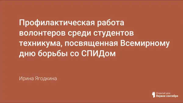Проблема распространения ВИЧ, СПИДа, алкоголизма, наркомании, токсикомании в молодёжной среде в настоящее время является одной из острых социальных проблем. Социально-экономические условия, состояние здоровья молодёжи и общества обуславливают необходимость ведения профилактической работы в студенческой среде. Одно из направлений такой работы среди студентов техникума – проведение декадника «Знаю, поддерживаю, присоединяюсь!», посвященного Всемирному дню борьбы со СПИДом.