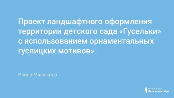Новизна и актуальность данного проекта в том, что орнаментальные гуслицкие мотивы никогда ещё не использовались при создании ландшафтных композиций, и мы впервые используем их не только для создания эстетически привлекательного ландшафта, но и создаём уникальный и неповторимый ландшафт на территории детского сада «Гусельки», преследуя в том числе и воспитательно-патриотические цели.