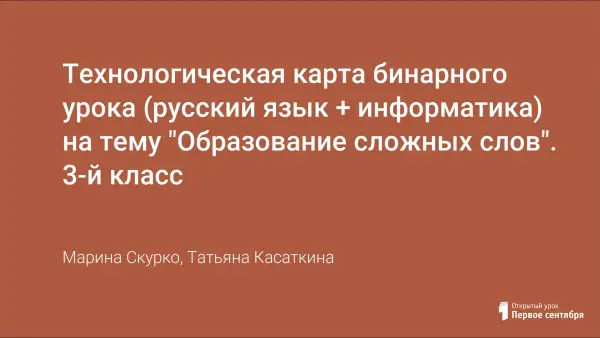Технологическая карта бинарного урока (русский язык + информатика) на тему "Образование сложных слов". 3-й класс
