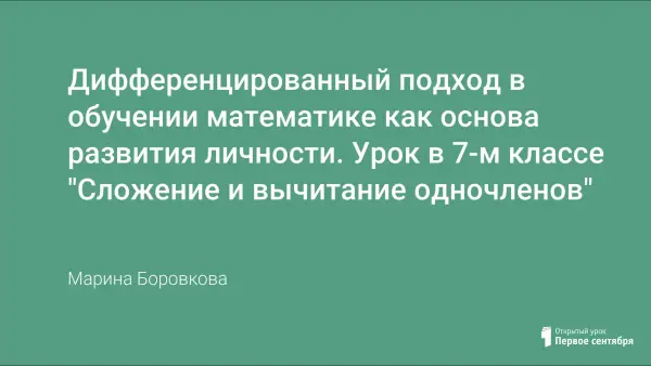 Дифференцированный подход к контролю знаний, умений и навыков по данной теме позволяет каждому ученику получить положительную оценку. Урок проведён в 7-м классе, изучающем алгебру по УМК А.Г. Мордковича, и является иллюстрацией использования принципов дифференцированного подхода в обучении математике.