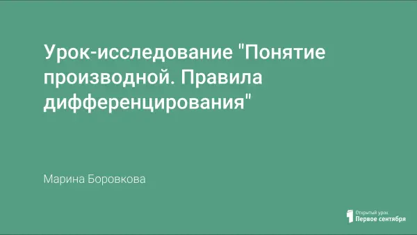На уроке обобщаются, систематизируются и расширяются знания о производной. Выявляется уровень сформированности умений по решению задач на применение знаний о производных в заданиях ЕГЭ. Учащиеся совершенствуют навыки вычисления производных с формулами и правилами дифференцирования. Цель урока: не только отработка умений и навыков вычисления производных и применение правил дифференцирования, но и формирование навыков укрепления и сохранения здоровья учащихся.