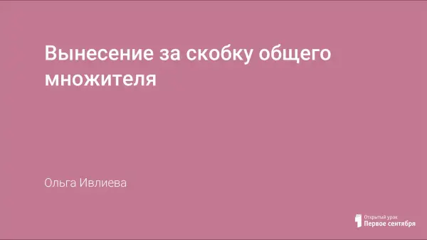 Работа представляет собой подборку материалов для проведения уроков алгебры в 7 классе по теме "Вынесение общего множителя за скобки". Урок носит интегрированный характер, предполагается владение учащимися основными офисными приложениями, поэтому урок должен проводиться в компьютерном кабинете.