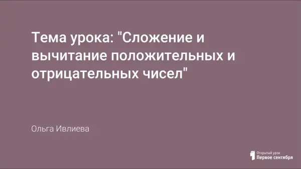 В ходе урока учащиеся совершают путешествие на остров целых чисел, где им приходится выполнять задания обитателей острова – Мудрого попугая и обезьянки Умницы. В ходе урока предполагается групповая работа. Задания, предложенные учащимся, носят занимательный и развивающий характер.