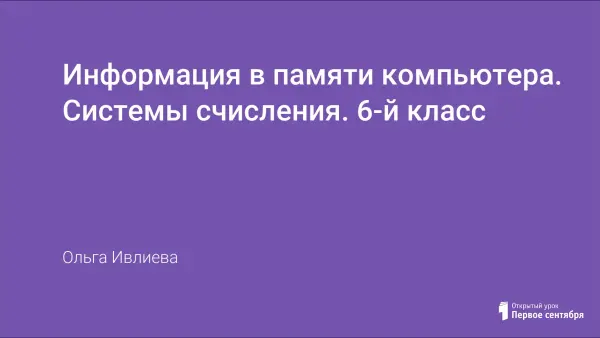 Урок информатики в 6-м классе по технологии развития критического мышления. На уроке происходит изучение и первичное закрепление знаний учащихся о преставлении информации в памяти компьютера и системах счисления. Важную часть урока представляет работа с учебником, заполнение кластера как прием смыслового чтения. Практическая работа с помощью программы Калькулятор позволила закрепить понятия систем счисления и развивать практические навыки работы на компьютере.