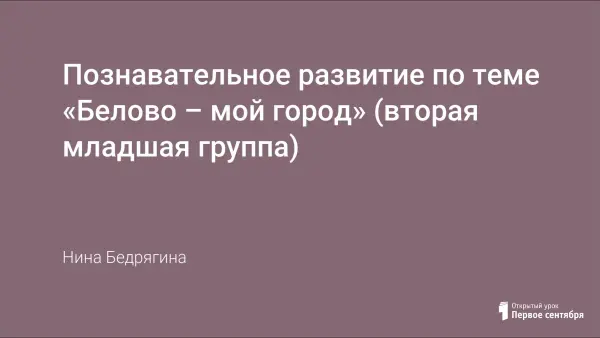 Цель занятия: формирование у детей представление о родном городе Белово. Задачи: воспитывать патриотические чувства, желание сохранять чистоту, порядок в своем городе, расширять знания детей о малой родине, познакомить с флагом и гербом Белово, развивать речь детей мышление, расширять словарный запас, развивать интерес к игровой деятельности.