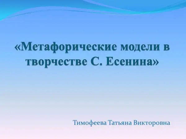 Цели урока: познакомить учащихся с особенностями творческого метода поэта; показать образность метафор в творчестве поэта.