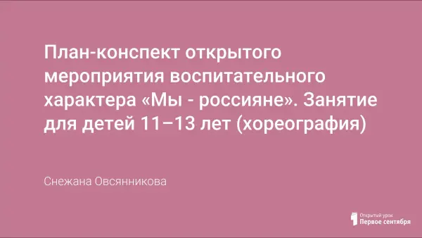 Цель занятия: воспитание патриотизма средствами хореографического искусства (на основе русского народного танца).