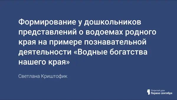 В работе представлены нетрадиционные методы по ознакомлению с водоемами родного края. В ходе деятельности у детей формируется представление о том, какое большое значение имеют источники чистой воды для всего живого на земле.