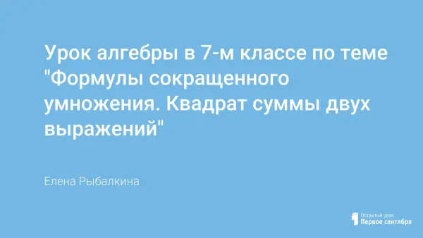 На уроке учащиеся знакомятся с формулой сокращенного умножения и доказывают ее справедливость. Урок способствует формированию умений и навыков самостоятельно проводить доказательства справедливости формул сокращенного умножения, правильно читать эти формулы, называть их компоненты.