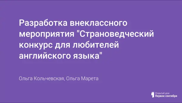 Разработка внеклассного мероприятия "Страноведческий конкурс для любителей английского языка"