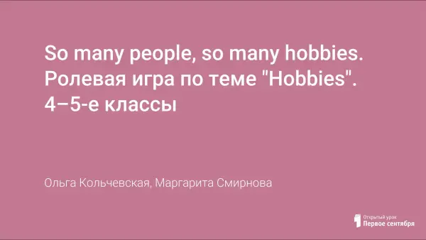 So many people, so many hobbies. Ролевая игра по теме "Hobbies". 4–5-е классы
