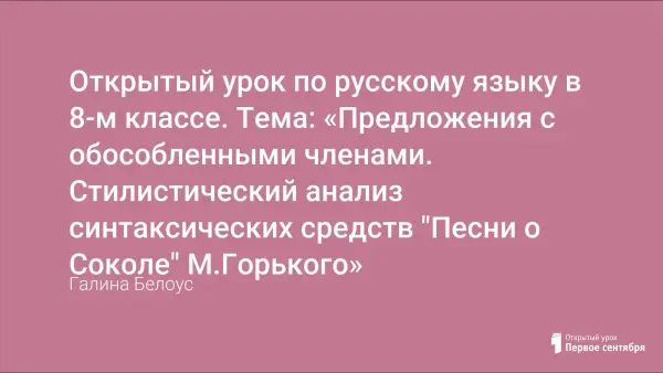 Урок является заключительным по теме "Обособленные члены предложения", он позволяет обобщить и систематизировать знания детей и одновременно закрепить умения и навыки по стилистическому анализу текста. А самое главное – воспитывает любовь к русскому языку, к Родине и такие личные качества, как стремление к победе, верность долгу, любовь к жизни.