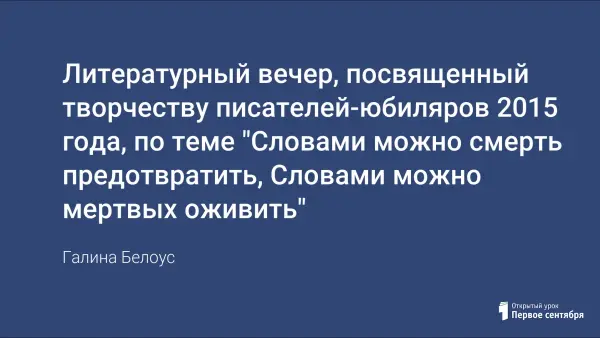 Именно слово связало произведения писателей от древнерусской литературы до наших дней, что смогли увидеть зрители праздника. В вечере приняли участие обучающиеся 5–11-х гуманитарных классов, поэтому произведения были выбраны для разного возраста. На мероприятие были приглашены творческие коллективы города: хор ветеранов, студия гитарной песни, детская студия "Твикс".