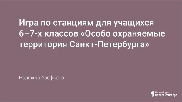 Игра по станциям для учащихся 6–7-х классов «Особо охраняемые территория Санкт-Петербурга»