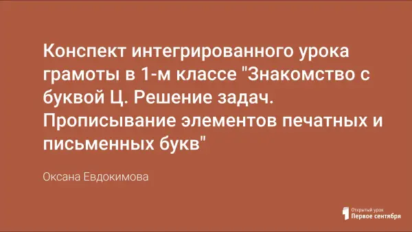 Интегрированниый урок обучению грамоте, письму и математике в 1-м классе по УМК Виноградовой Н.Ф. на котором ученики знакомятся с буквой Ц, одновременно решая задачи и прописывая элементы печатных и письменных букв.